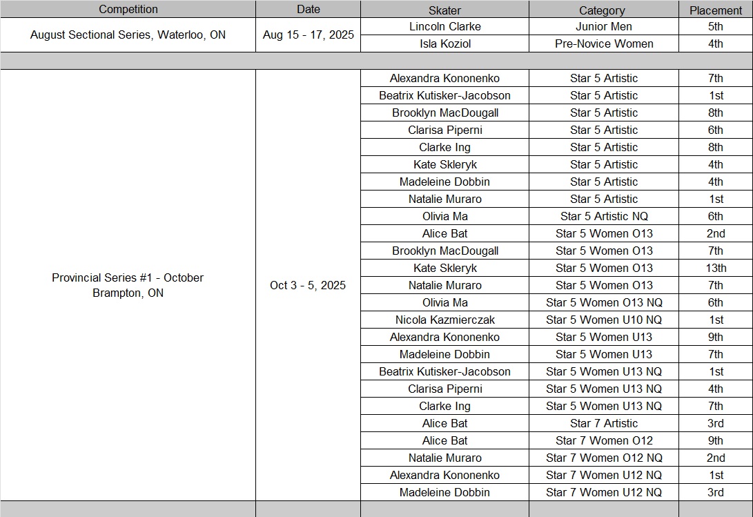 Port Credit Skating Club Skater Awards 2024 - 2025